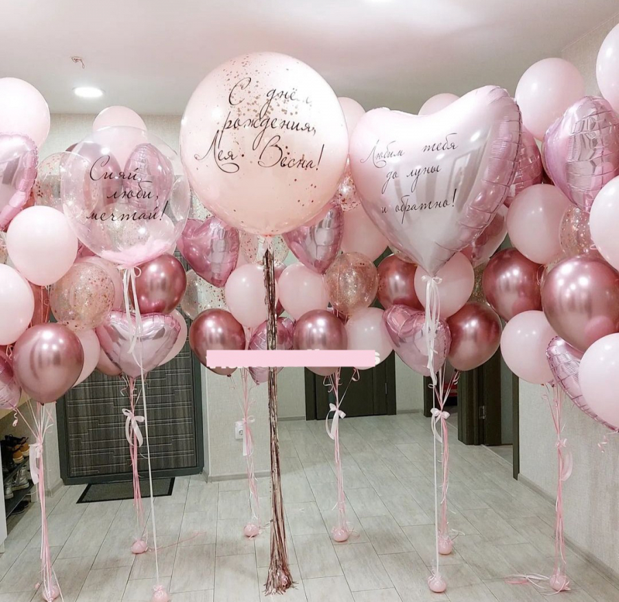 - Гелиевые шары и шарики с конфетти 70 шт;