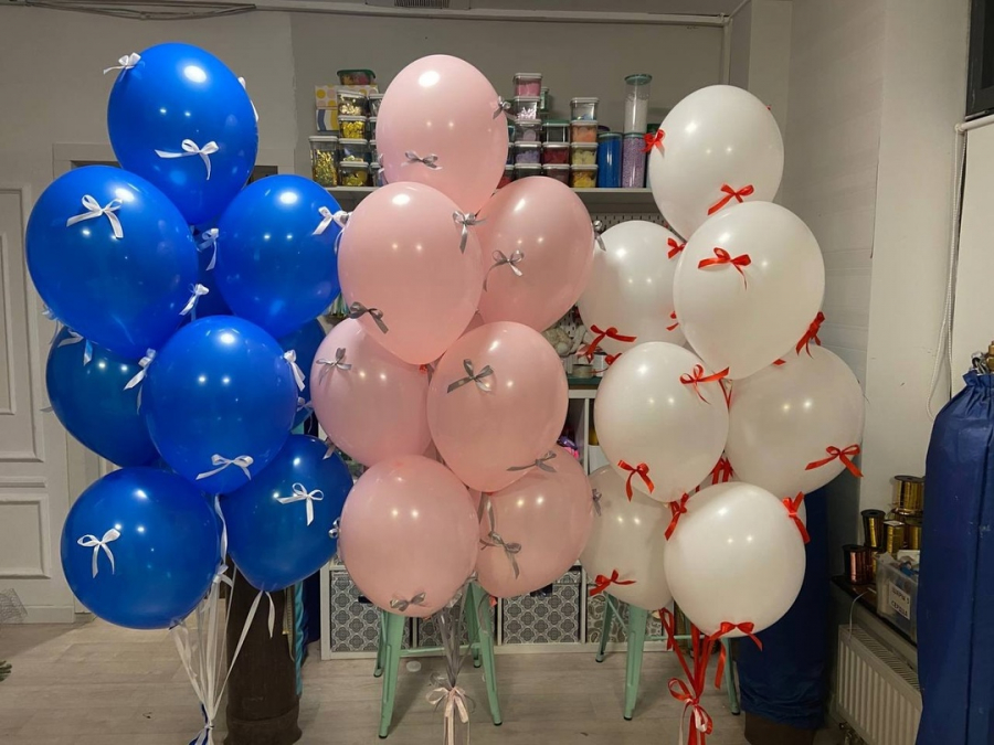 Композиция из 30 гелиевых шаров с бантиками