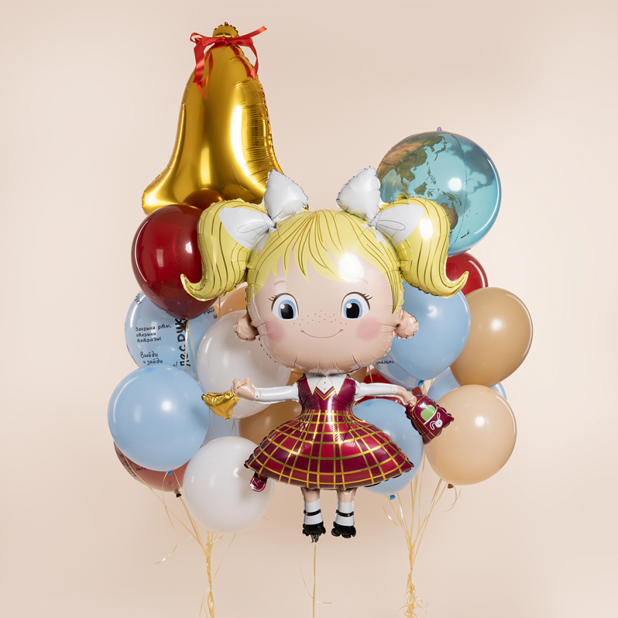 Композиция из гелиевых шаров Девочка с колокольчиком на 1 сентября