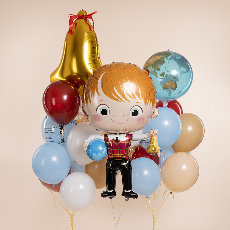Композиция из гелиевых шаров Мальчик с колокольчиком на 1 сентября