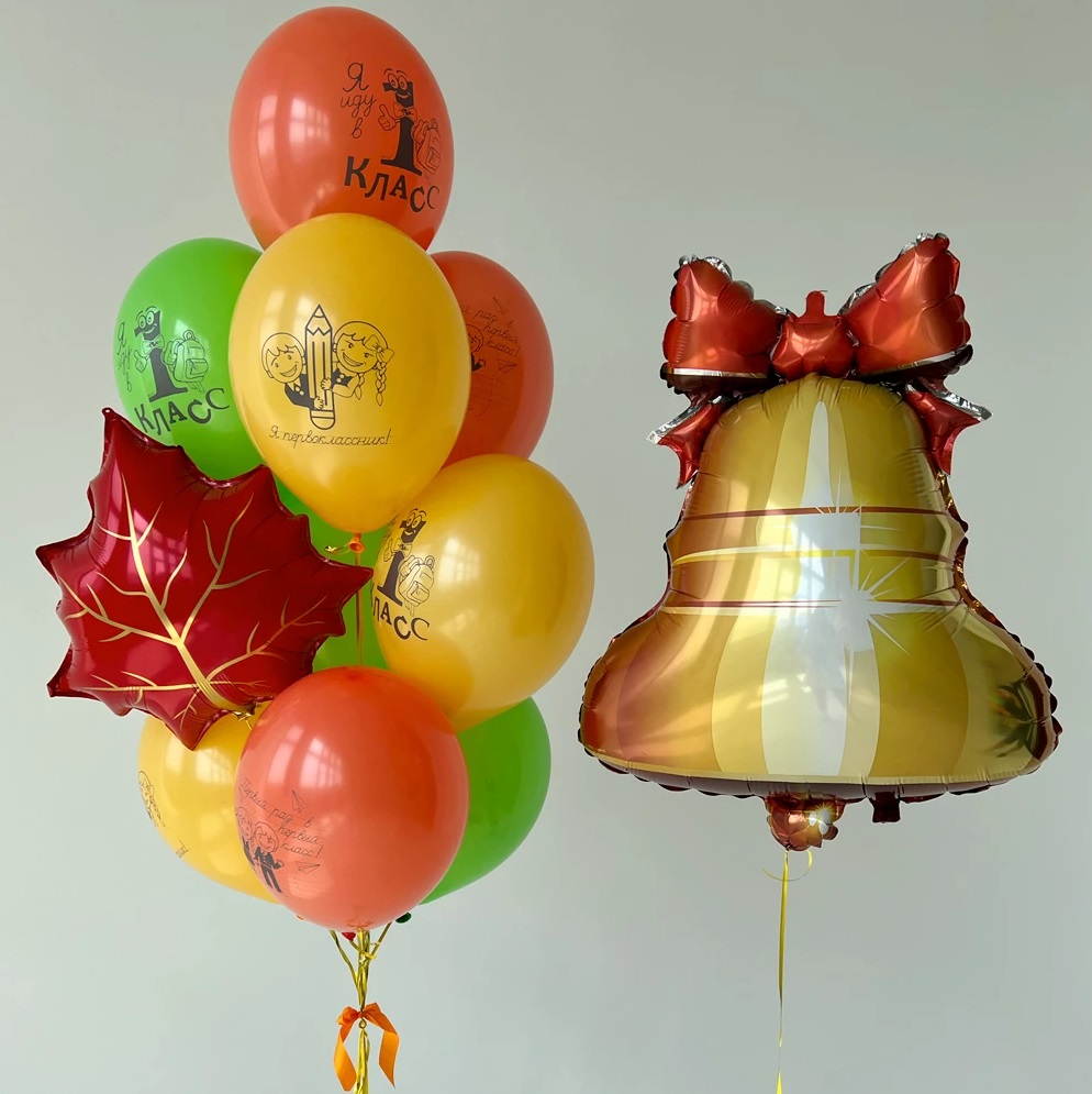 Главная _ Композиции из шаров _ Готовые решения _ Композиция из гелиевых шаров Звонок колокольчика на 1 сентября