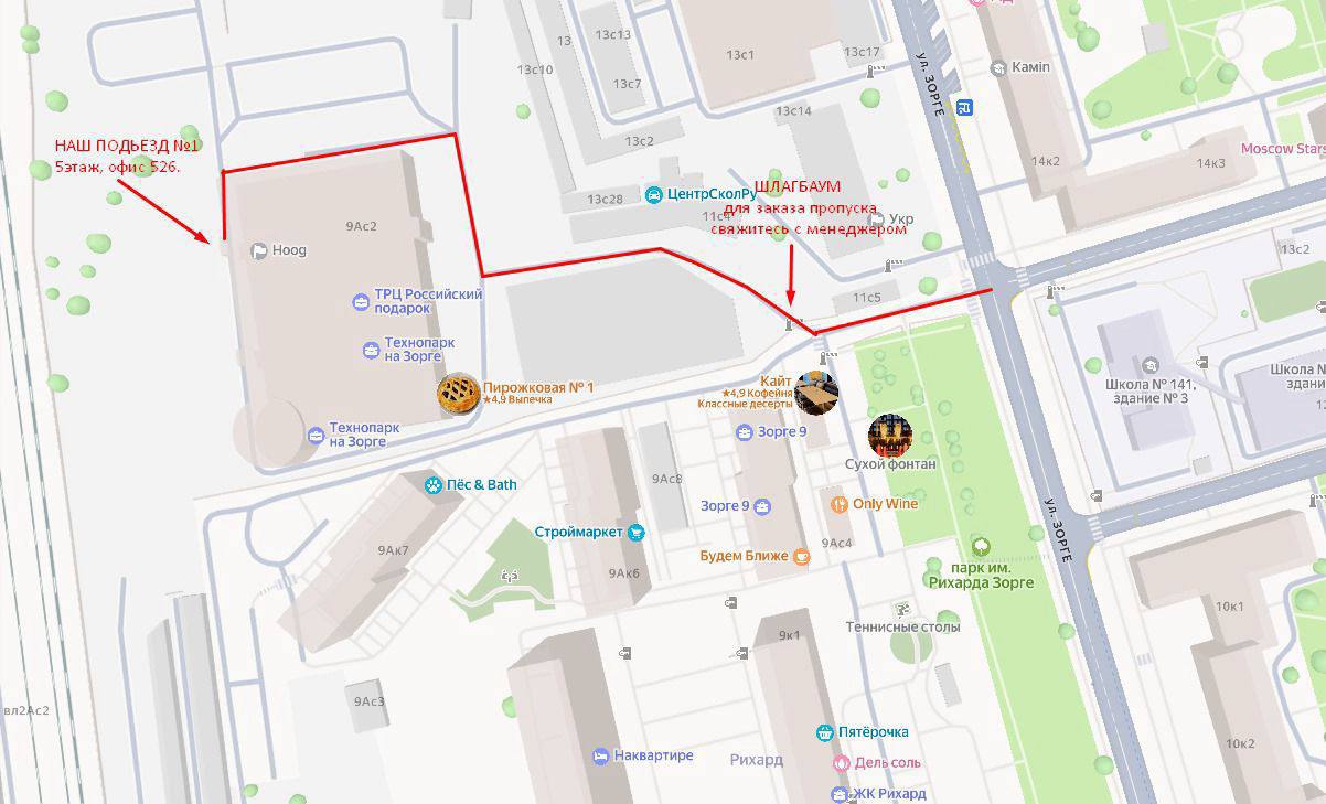 Самовывоз производится по адресу: ул. Зорге, дом 9Ас2, 1 подъезд, 5 этаж, офис 526